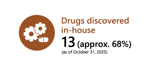 One of Taiho Pharmaceutical’s strengths is its ability to create innovative new drugs using its unique drug discovery platforms. Within the Otsuka group, Taiho Pharmaceutical has an important role in oncology and takes on the challenge of creating therapeutics for significant unmet needs such as cancers with brain metastasis and those with RAS mutations. We are also advancing drug discovery research in the area of immune-related diseases by applying technologies emerging from its cancer research. In addition, we are pursuing global research collaboration and have built our own network with biotech ventures and academia (universities and research institutions) to obtain innovative drug-discovery technologies and drug seeds, in order to supplement our own technologies and accelerate R&D.