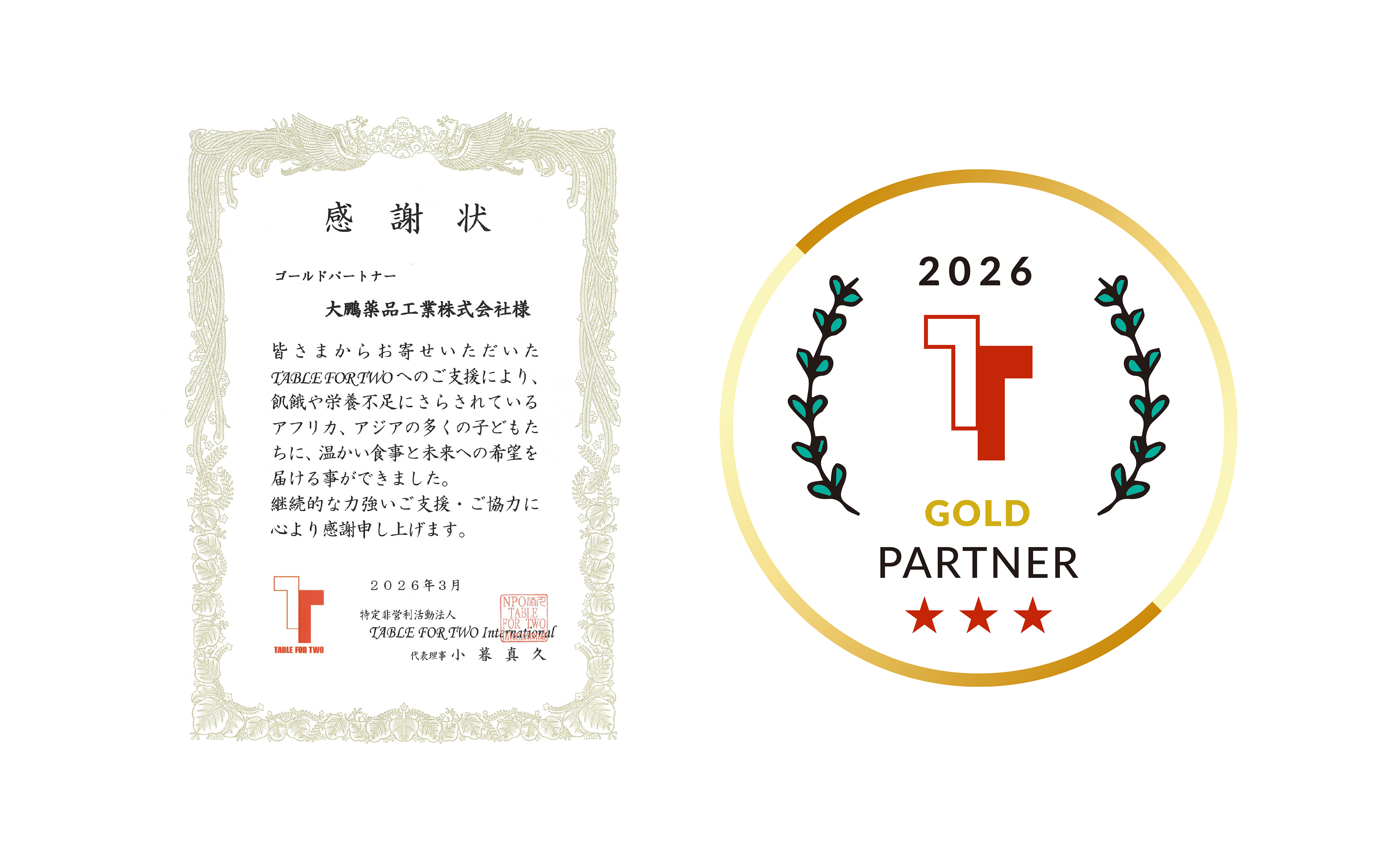 The TABLE FOR TWO (TFT) program is a social contribution initiative based on the concept of “sharing a meal across time and space.” It aims to simultaneously address hunger and malnutrition in developing countries as well as obesity in developed countries. Taiho Pharmaceutical began offering the TFT program at its Tokushima Plant and Tsukuba Research Center's cafeteria in 2019. The initiative was also expanded to Saitama Plant's cafeteria in December 2025. When employees purchase TFT-designated menu items, 10 yen is donated from the employee and an additional 10 yen is matched by the company, for a total of 20 yen per meal. These donations are made through the certified non-profit organization TABLE FOR TWO and are used to provide school meals for children in developing countries.