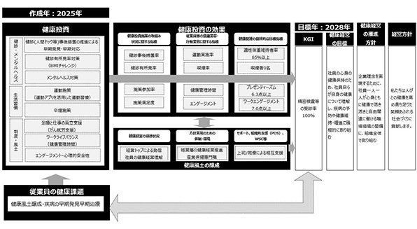 月1回のノー残業デー(セルフケアデー)の実施やeラーニング・掲示板による情報発信、各種研修を通じた啓発を行っている。社内の健康管理時間の可視化を実施し、通常の過重労働対策に加え、営業のみなし労働者や管理職への健康管理も実施。「プラスdeハッピーホリデー」など、有給休暇取得強化日を定め、社員へ啓発。 |