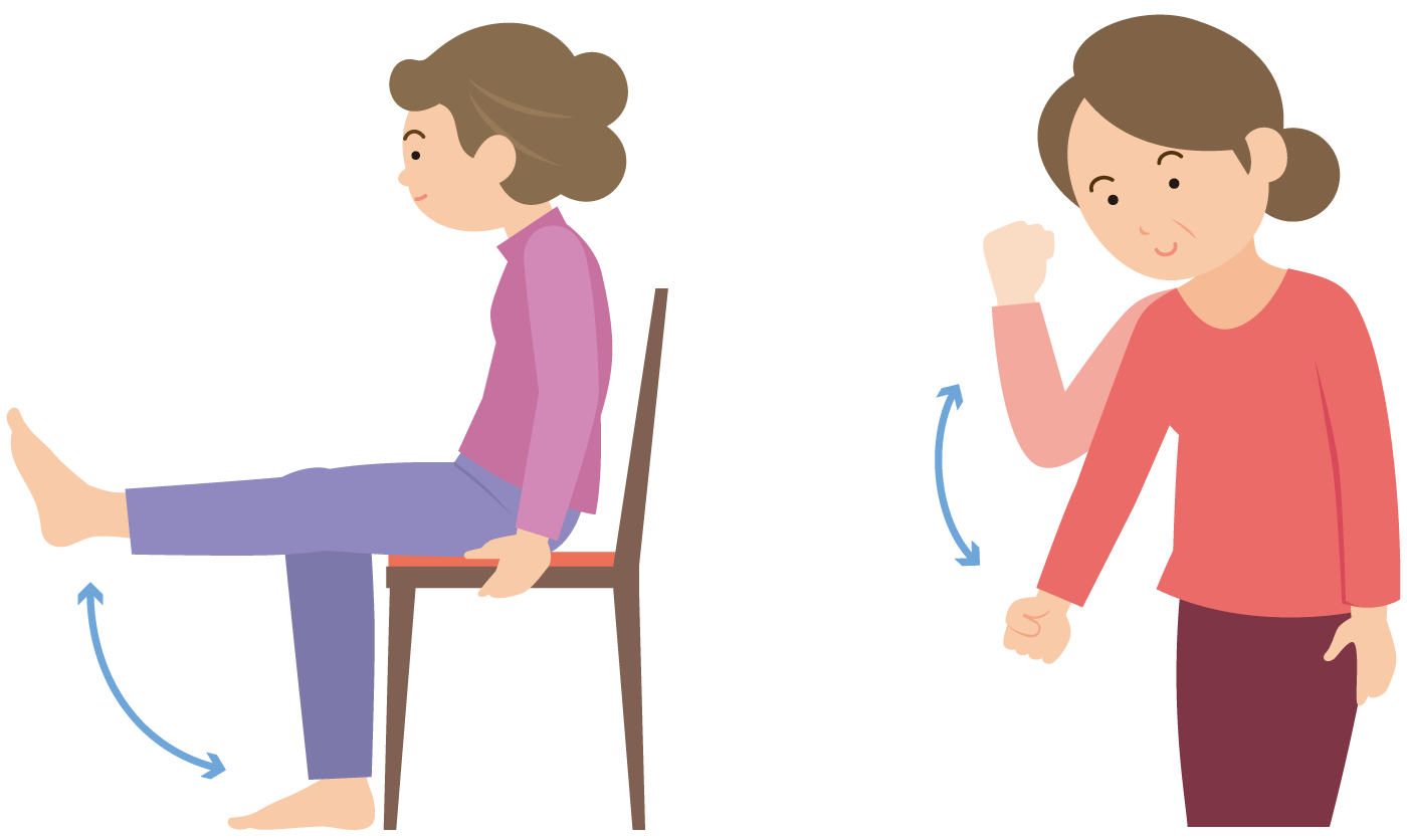 以下に示す手軽な運動を、呼吸や脈拍が少し早くなる程度を目安として無理のない範囲で取り入れましょう。