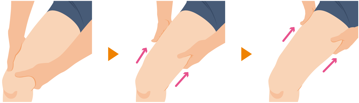 太ももの裏をひざから足の付け根に向かって、リンパ液を流すイメージでさすります。左右とも5回程度行うのが目安です。