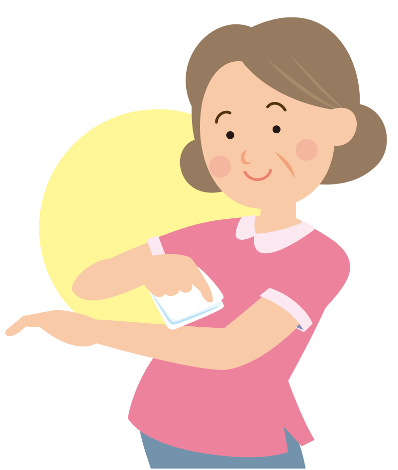 ガーゼなどのやわらかい素材でやさしく拭き取りましょう。