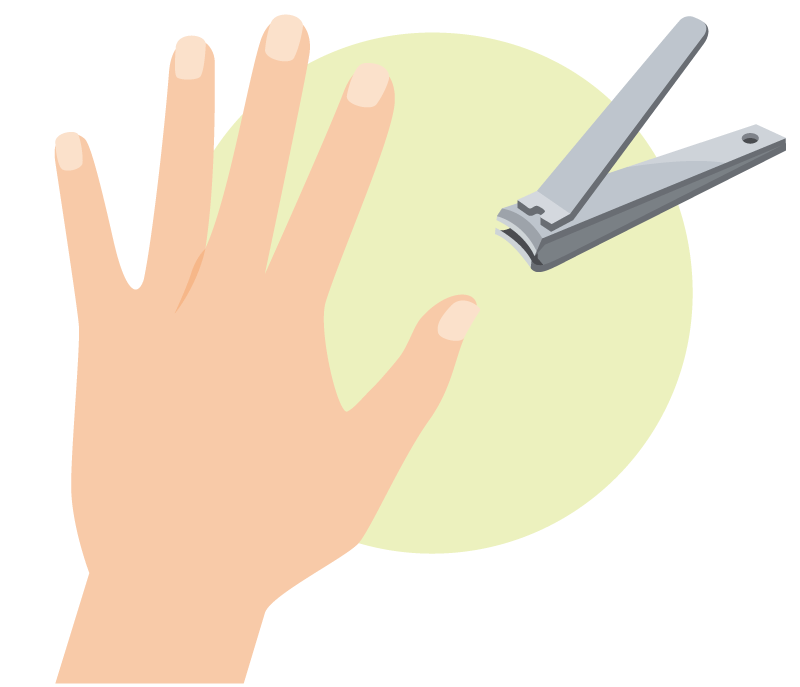 皮膚を傷つけないよう爪はこまめに切るよう心がけ、爪切りの際には深爪に注意しましょう。
