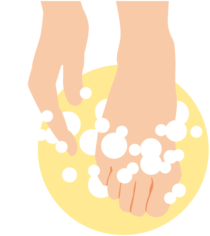 石けんなどの泡を使って、なでるようにやさしく洗いましょう。足の指の間や関節のしわの間も忘れずに洗ってください。