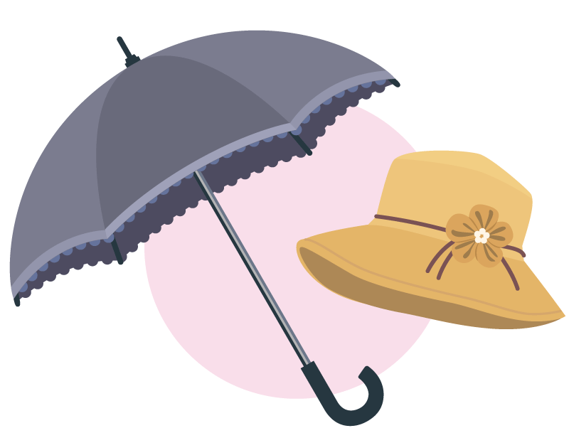 虫さされやけが、日焼けの予防として、日傘、帽子、長袖や長ズボン、靴下などを活用しましょう。