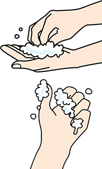 手や体を洗うときに、石けんをよく泡立てて爪も優しく丁寧に洗いましょう。